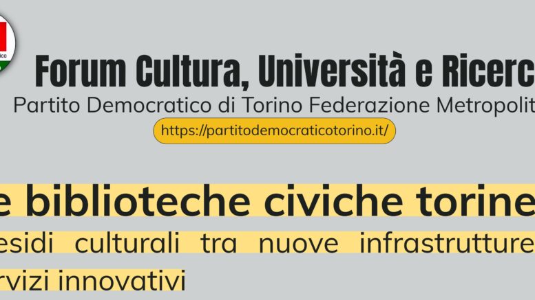 Le biblioteche civiche torinesi, presidi culturali tra nuove infrastrutture e servizi innovativi Forum Cultura, Università e Ricerca PD Torino _Venerdì 10 aprile h. 18:00 _Polo Culturale Lombroso 16 – Via Lombroso 16 – Torino Intervengono: Rosanna Purchia – Assessora alla Cultura della Città…
